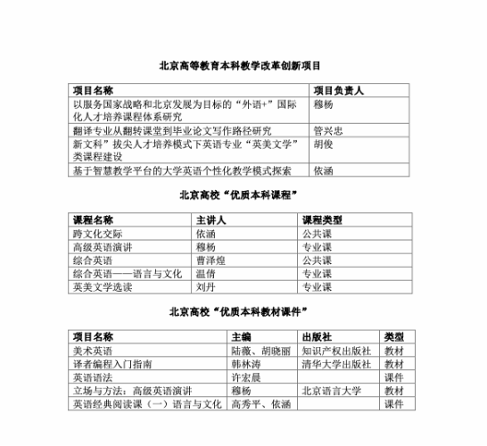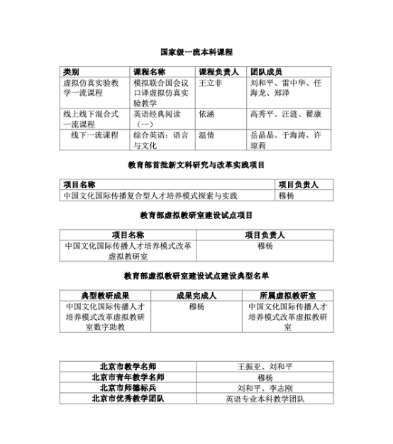 此外,学院还荣获北京市高等教育教学成果一等奖,承担了教育部首批新文科研究与改革实践项目、教育部虚拟教研室建设试点项目及4项北京高等教育本科教学改革创新项目。同时,有5门课程入选北京高校“优质本科课程”,5项成果获评北京高校“优质本科教材课件”,多篇本科生论文获评北京市优秀毕业论文。