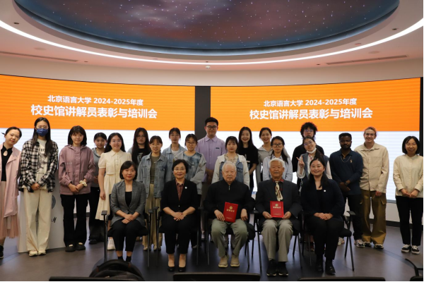 校史宣讲队伍不断壮大。自2022年9月“青言青语”校史宣讲团成立以来,队伍规模持续扩大,从最初的10余人发展至60余人。队伍建设实现了三个重要突破:一是讲解员构成多元化,由单一的校史馆专职讲解员发展为包含志愿宣讲团、勤工助学学生、高翻学院法语讲解小组(含2名外国留学生)、北语广播中心讲解员、离退休银龄讲解员等在内的多层次宣讲队伍;二是管理制度规范化,制定并完善《校史讲解员管理办法》,特聘指导讲师,开展多形式讲解技能培训;三是培养机制长效化,通过举办年度表彰会、组织实践锻炼等方式,提升宣讲队伍整体素质,培养爱校情怀,使学生在讲述北语中得到锻炼和成长。