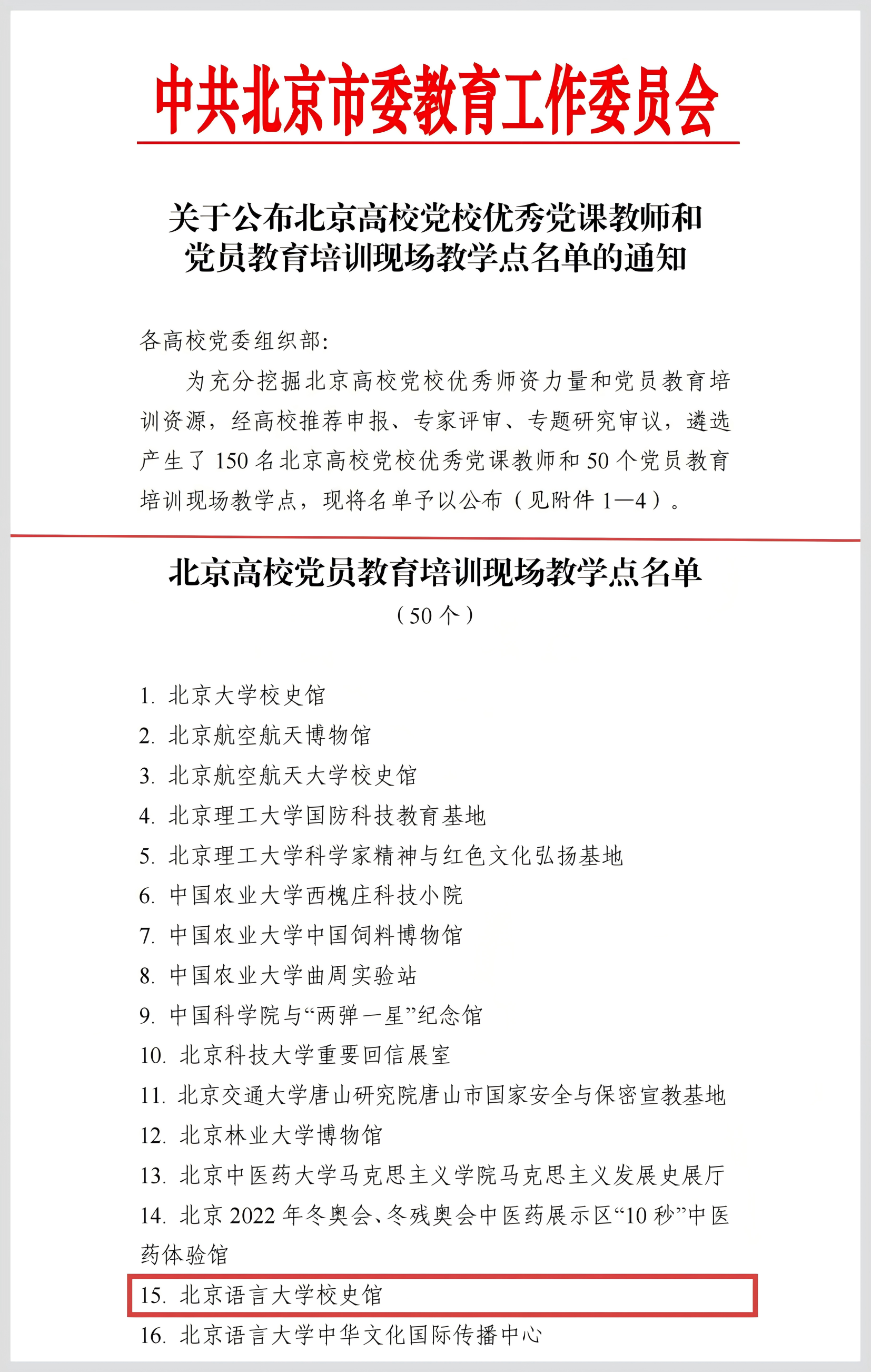 2025年4月22日北京语言大学校史馆入选北京高校党员教育培训现场教学点